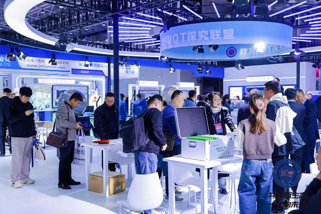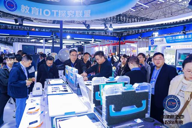 在N3馆-N3006展位,教育IOT探究联盟(简称EIOT联盟)以兼具科技感与实用性的场景化布局参展。联盟集结了教育行业多家优质企业,通过智慧教室联动、跨学科融合实验室、智能物联等沉浸式展示场景,全面呈现未来数字化校园的建设思路与生态架构。现场展出的多元产品矩阵覆盖全学段智慧教育解决方案、职业教育实训设备及高等教育科研仪器等,直观展现了教育信息化的融合应用成果,让参观者近距离感受科技与教育融合的实践价值。