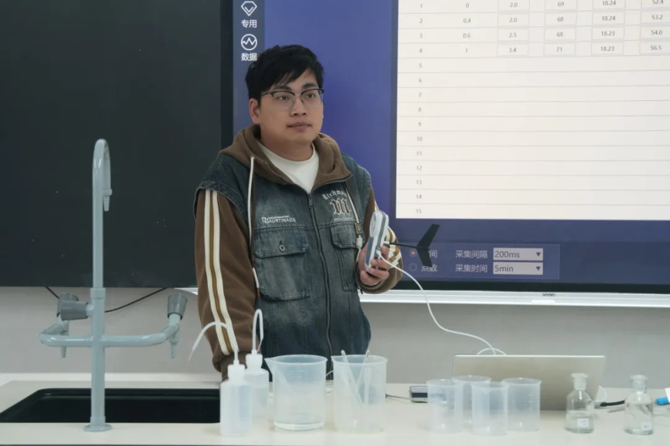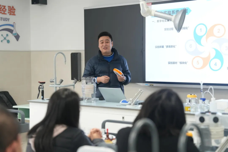 随后开展了分组实验,让参训教师们体验了数字化实验,在实践中迅速领略了其魅力:它让抽象的变量关系变得直观可感,让复杂的实验过程变得简单可控。这场沉浸式的“实操练兵”,不仅让教师们对新技术的认知从理论走向了实践,也启发了他们将数字化工具应用于传统实验教学的思考,明确了改进的方向。